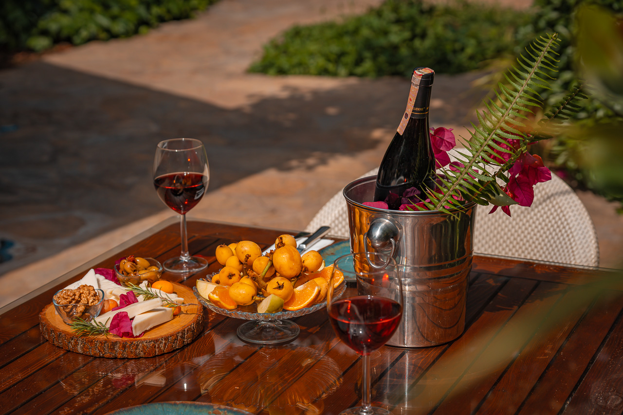 Restoran, portakal ve nar ağaçlarıyla çevrili bahçede yer alıyor. Gün batımında hafif bir esinti eşliğinde mum ışığında yemek yemek, Villa Monte'nin sunduğu romantik ve huzurlu atmosferin bir parçası. Güler yüzlü personelimiz ve özenli servisimizle her öğün, bir ritüele dönüşüyor.